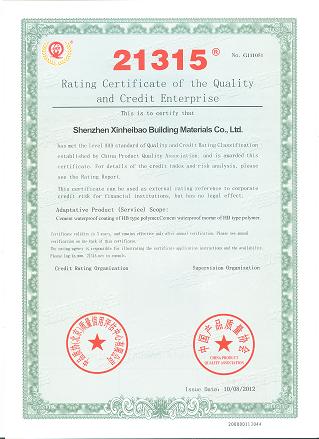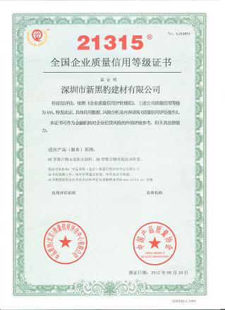 2012年8月,通過中品質(zhì)協(xié)(北京)質(zhì)量信用評估中心有限公司依照《企業(yè)質(zhì)量信用評價規(guī)范》對我們公司經(jīng)過征信評估,我們公司的質(zhì)量信用等級為AAA級,中國產(chǎn)品質(zhì)量協(xié)會為我們公司頒發(fā)了《全國企業(yè)質(zhì)量信用等級證書》。