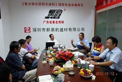 為了更好地在全國開展建筑防水行業(yè)“質(zhì)量年”活動的各項工作,推動防水行業(yè)健康發(fā)展,調(diào)查摸底全國最具有發(fā)展前景,最具有活力的中小防水企業(yè),2012年10月12日上午,中國建筑防水協(xié)會理事長朱冬青教授和苗燕秘書長在廣東省建筑防水材料協(xié)會常務(wù)副會長,深圳市防水專業(yè)委員會常務(wù)副主任瞿培華教授,深圳市防水專家委員會專家張道真教授和秦紹元高工,深圳市建設(shè)工程質(zhì)量檢測中心陳少波高級工程師,深圳市防水專業(yè)委員會辦公室秘書劉曉娟等專家的陪同下對深圳市新黑豹建材有限公司進行了為期一天的考察。