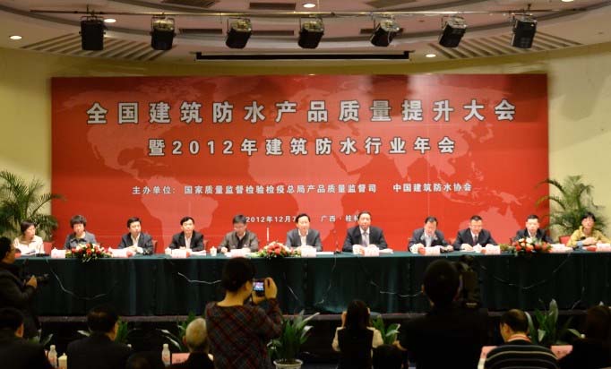 2012年12月7日,由國家質量監(jiān)督檢驗檢疫總局、中國建筑防水協(xié)會主辦的全國建筑防水產(chǎn)品質量提升大會在桂林召開。國家質檢總局產(chǎn)品質量監(jiān)督司鄭衛(wèi)華巡視員主持會議。我公司作為會員單位也參加了這次會議。