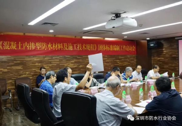 2019年5月16日,在深圳市設(shè)計(jì)大廈12樓會議室,深圳市防水行業(yè)協(xié)會組織召開了《混凝土內(nèi)摻型自修復(fù)防水材料及施工技術(shù)規(guī)程》團(tuán)體標(biāo)準(zhǔn)編制工作的啟動會議。