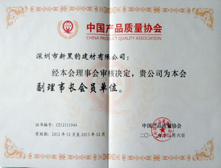 中國(guó)產(chǎn)品質(zhì)量協(xié)會(huì)副理事長(zhǎng)單位證書(shū)