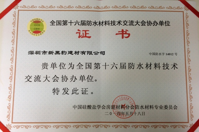 我公司協(xié)辦全國(guó)第十六屆防水材料技術(shù)交流大會(huì)證書
