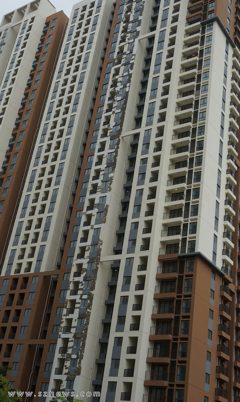 深圳新聞網(wǎng)7月26日訊(記者 王丹丹)安居房項目中海閱景花園存在質(zhì)量問題?近日,有不少網(wǎng)友在深圳各大論壇反映(點(diǎn)擊進(jìn)入貼文),深圳安居房中海閱景花園項目外墻嚴(yán)重脫落,7月25日記者在現(xiàn)場發(fā)現(xiàn),閱景花園4棟塔樓均存在不同程度的外墻脫落,最嚴(yán)重的部分從一樓到頂樓均有脫落現(xiàn)象。