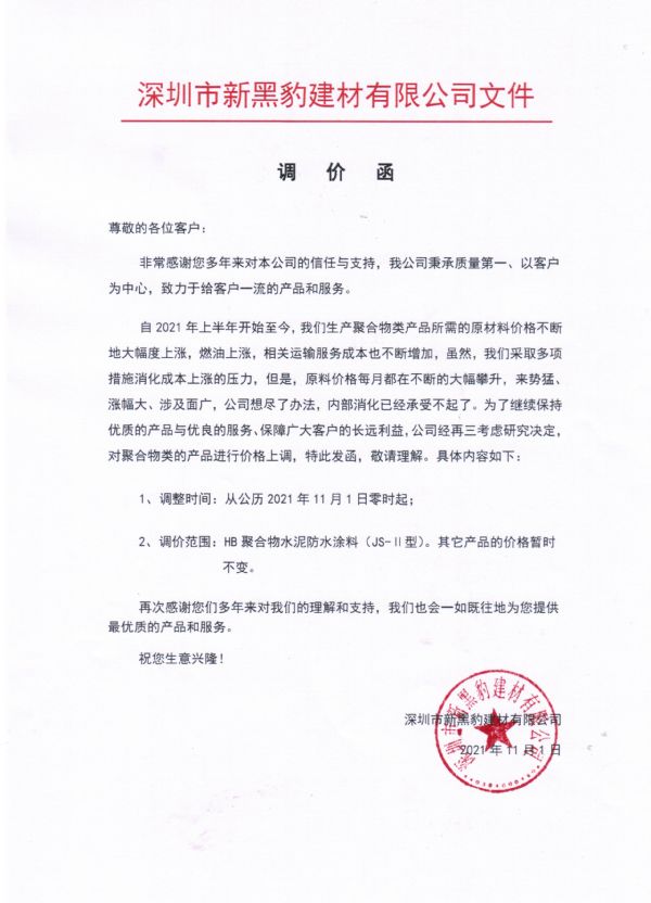 2021年11月調(diào)價(jià)通知